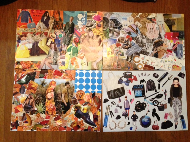 “秋”のイメージカラーを雑誌などから探し出し、切り出し、貼るという作業をひたすら3時間行いました!